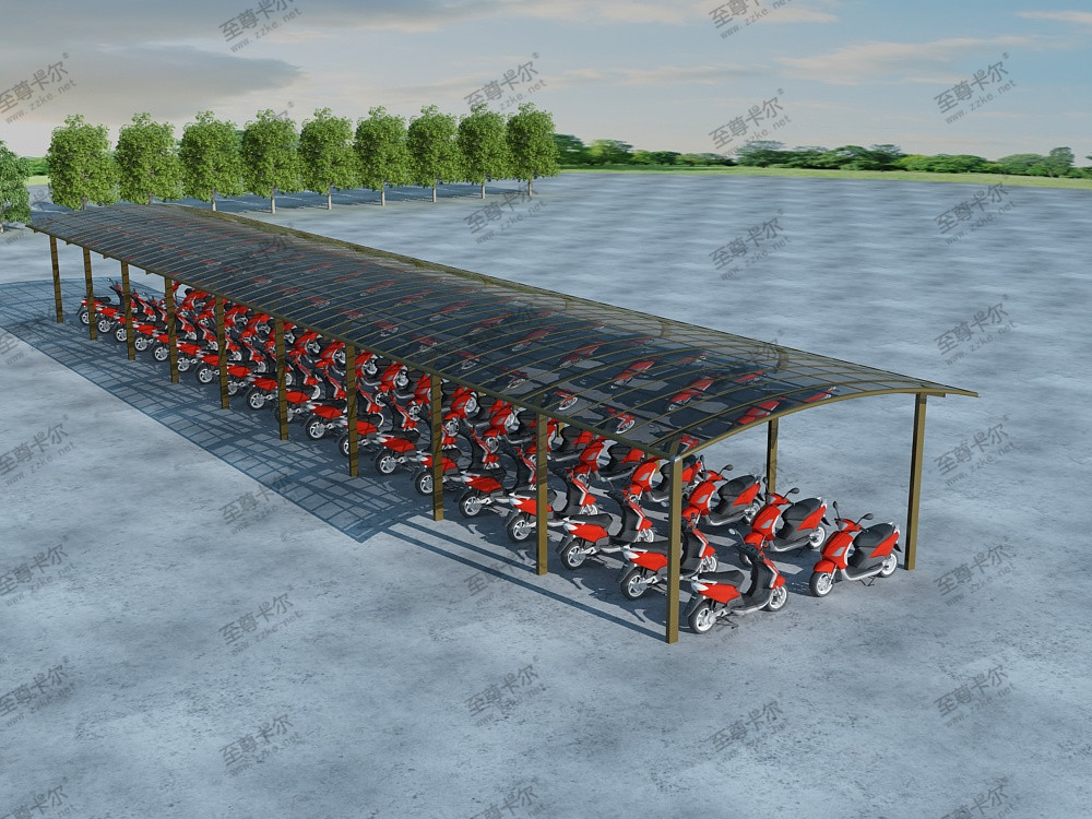 至尊卡爾的自行車車棚不僅耐用、安全,還可根據現場的需要和客戶的需求來定制自行車棚的款式。鋁合金自行車車棚有分為r字型、n字型、Y字形,顏色多款可以選擇,分別有磨砂黑、象牙白、香檳色、咖啡色。以現代化的設計風格,顯出簡單、時尚、而富有個性,如下自行車車棚效果圖。